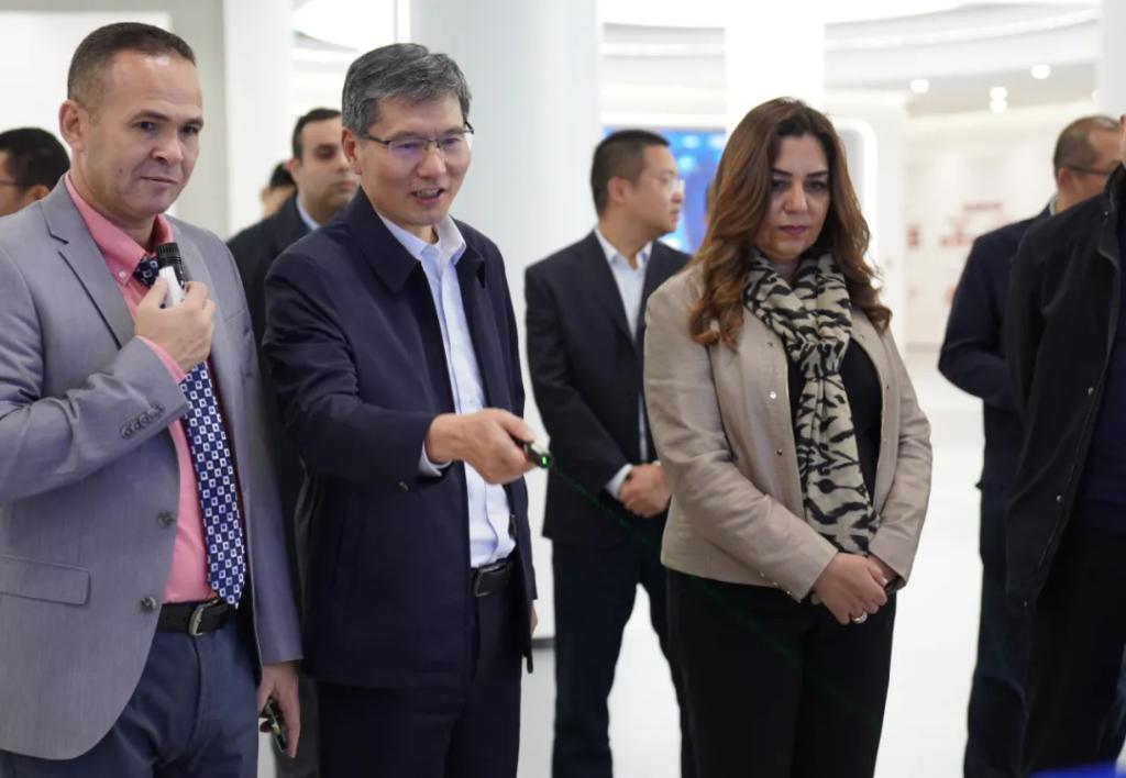 马纳尔一行参观了人生就是搏科技展示厅,了解了人生就是搏集团的产业布局、清洁能源装备、国内外市场等情况。